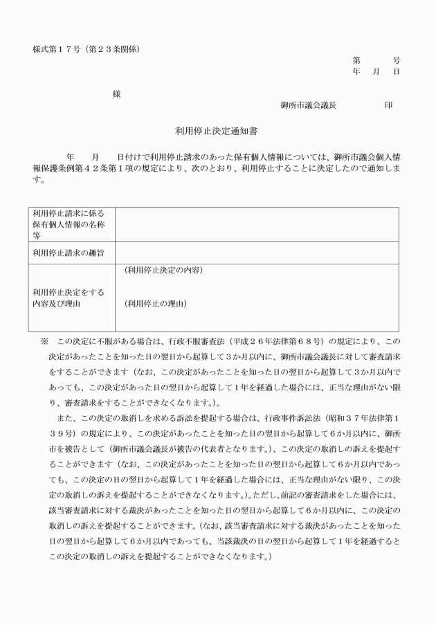 ○御所市議会個人情報保護条例施行規則